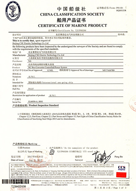 低壓船用核心功率模塊系列產(chǎn)品獲得了中國船級社、法國船級社、挪威船級社等主流船級社的型式認(rèn)可,
