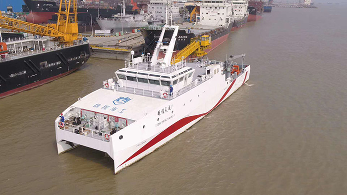 7月18日上午,國內(nèi)艦船綜合電力團(tuán)隊(duì)、海軍工程大學(xué)馬偉明院士團(tuán)隊(duì)在民用領(lǐng)域內(nèi)的經(jīng)典示范項(xiàng)目-“雄程天威1”號風(fēng)電運(yùn)維船在大洋海裝碼頭舉行了隆重的交接船儀式,正式交付用戶并投入使用。本項(xiàng)目的設(shè)備制造及項(xiàng)目執(zhí)行由中國船舶下屬的無錫賽思億電氣科技有限公司完成。