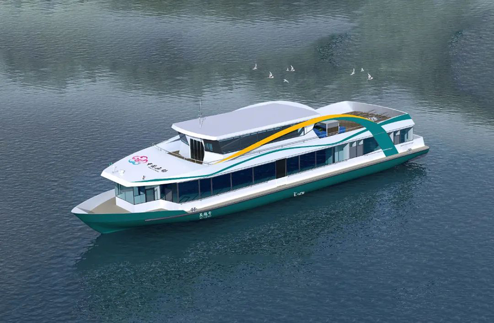 該船最大船長40m,型寬9m,型深2m,采用賽思億基于直流組網(wǎng)技術(shù)的S-Hybrid-R混合動力系統(tǒng),整個系統(tǒng)配置2臺160kW的發(fā)電機(jī)組,2套245kWh鋰電池組,驅(qū)動2臺90kW的主推電機(jī),關(guān)鍵變頻電控設(shè)備采用賽思億自主知識產(chǎn)權(quán)產(chǎn)品。賽思億S-Hybrid-R混合動力系統(tǒng)具備多種推進(jìn)模式,系統(tǒng)噪音低,動力系統(tǒng)先進(jìn),可滿足景區(qū)不同需求。該項目是賽思億在全國重點(diǎn)景區(qū)的又一示范!
