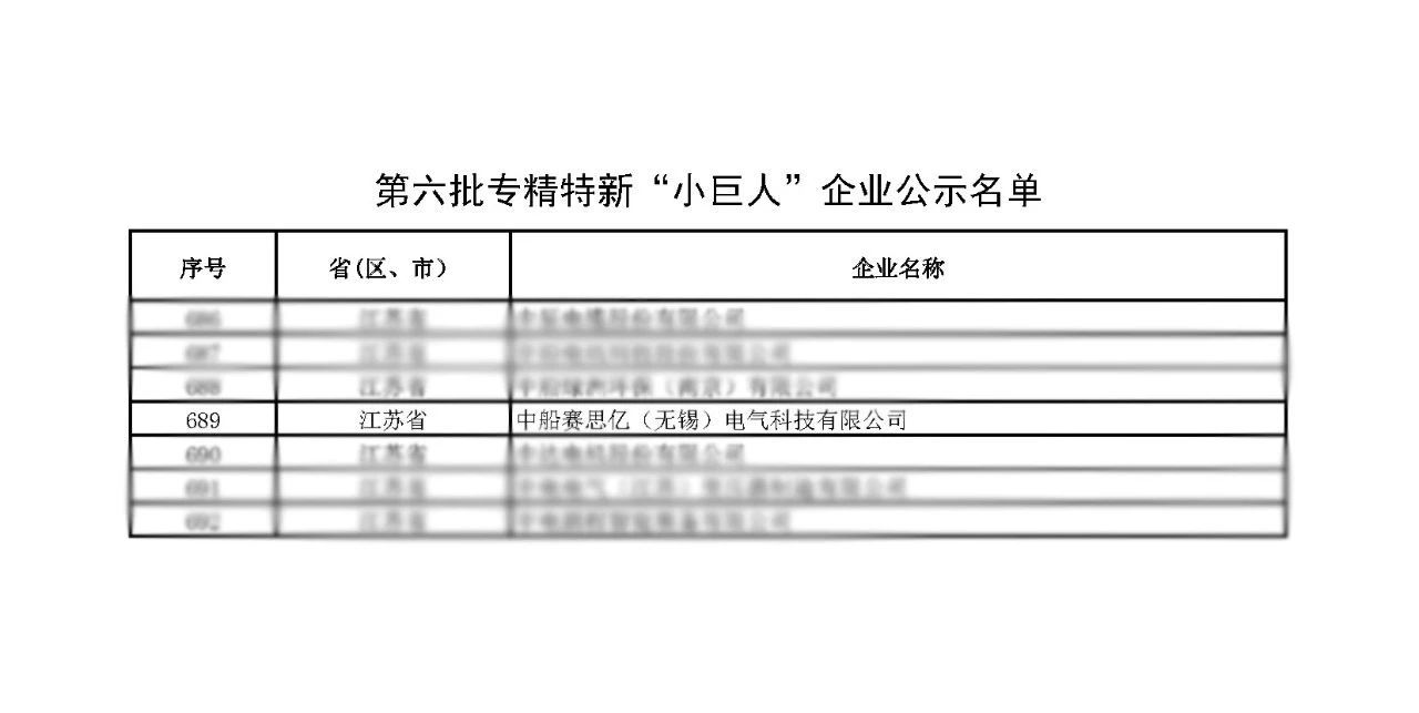 近日,江蘇省工信廳發(fā)布了第六批國家專精特新“小巨人”企業(yè)名單,中船賽思億(無錫)電氣科技有限公司在列。專精特新“小巨人”企業(yè)是“專精特新”中小企業(yè)中的佼佼者,是專注于細分市場、創(chuàng)新能力強、市場占有率高、掌握關鍵核心技術、質量效益優(yōu)的排頭兵企業(yè)。