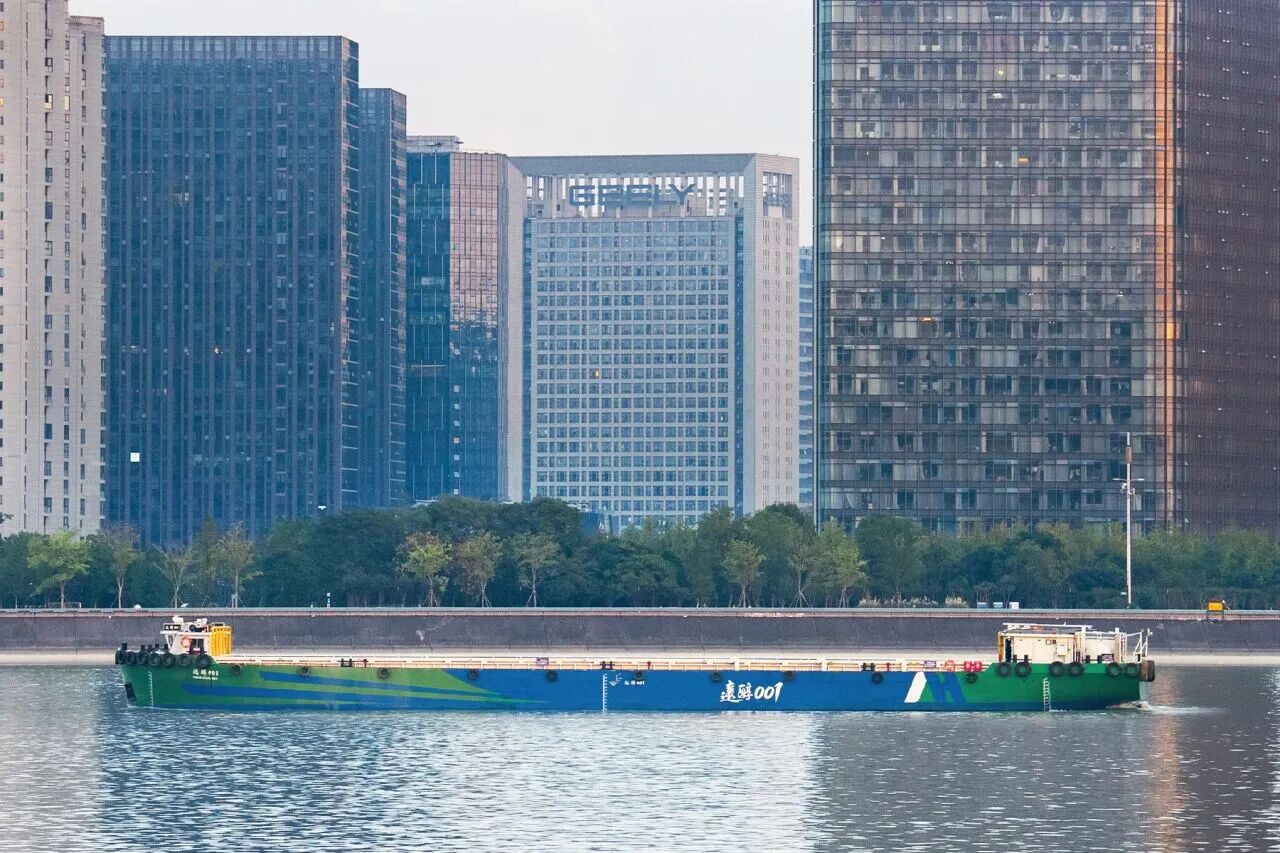 “遠醇001”號64TEU內(nèi)河貨運醇氫電動船舶,采用鋰電池與甲醇雙動力源配置,整個系統(tǒng)配置2臺甲醇發(fā)電機組、2套鋰電池組,可“醇”可“電”。這一配置使其能在復(fù)雜的工況下保持良好的穩(wěn)定性和協(xié)調(diào)性,同時鋰電池的加入,讓動力系統(tǒng)擁有削峰填谷、故障穿越的顯著優(yōu)勢,有效提升全船能效。值得一提的是,該船通過“甲醇發(fā)電+鋰電儲能”的高效動力組合模式,續(xù)航里程可提升至1500km,成為內(nèi)河中長距離航行的優(yōu)選方案,“續(xù)航無憂”與“綠色環(huán)保”也成為其核心競爭力。