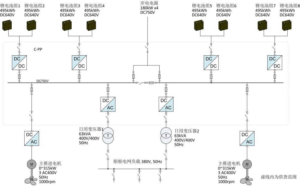 賽思億為3000噸散貨船提供的純電池動力直流組網(wǎng)電力推進(jìn)系統(tǒng)主要包括:直流母線變頻電控設(shè)備等,該系統(tǒng)采用鋰電池綠色能源,可實(shí)現(xiàn)“零排放”綠色航運(yùn)。